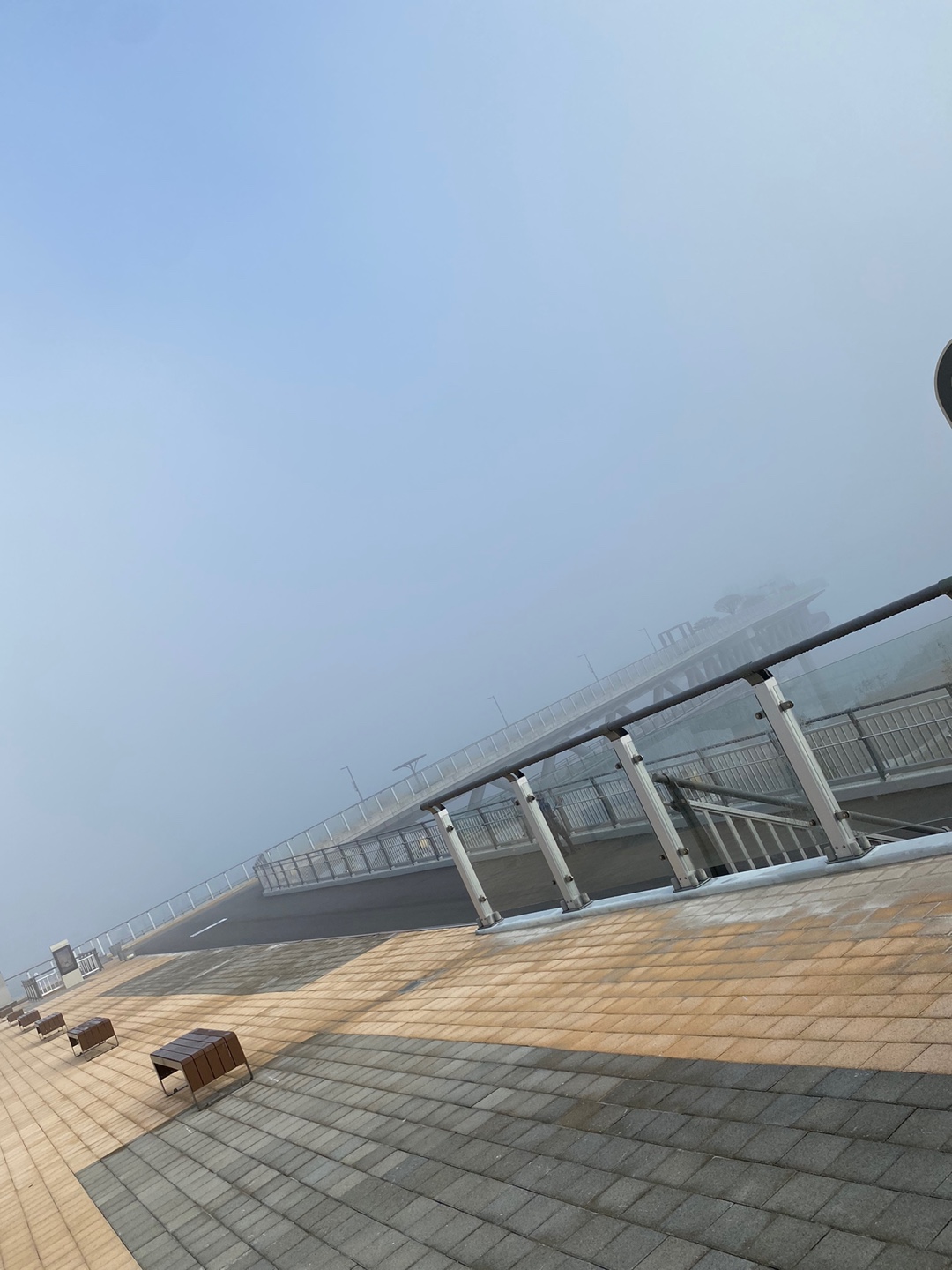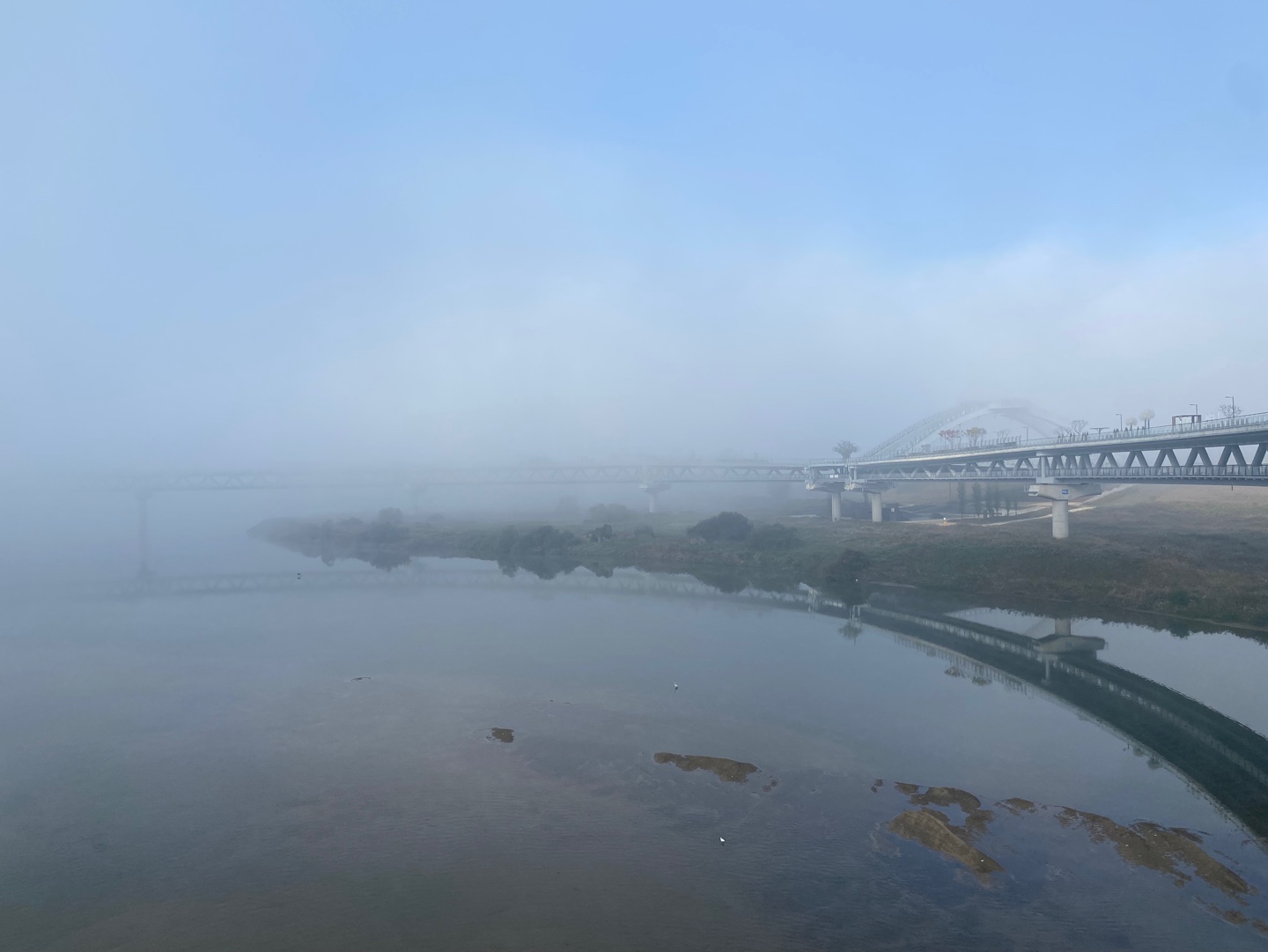 아직 안개가 자욱하게 내려앉은 시간이다보니 시야가 확 트이지 않았지만, 평평하게 잘 포장된 자전거길을 달리는 것 만으로도 힐링이 되거든요.