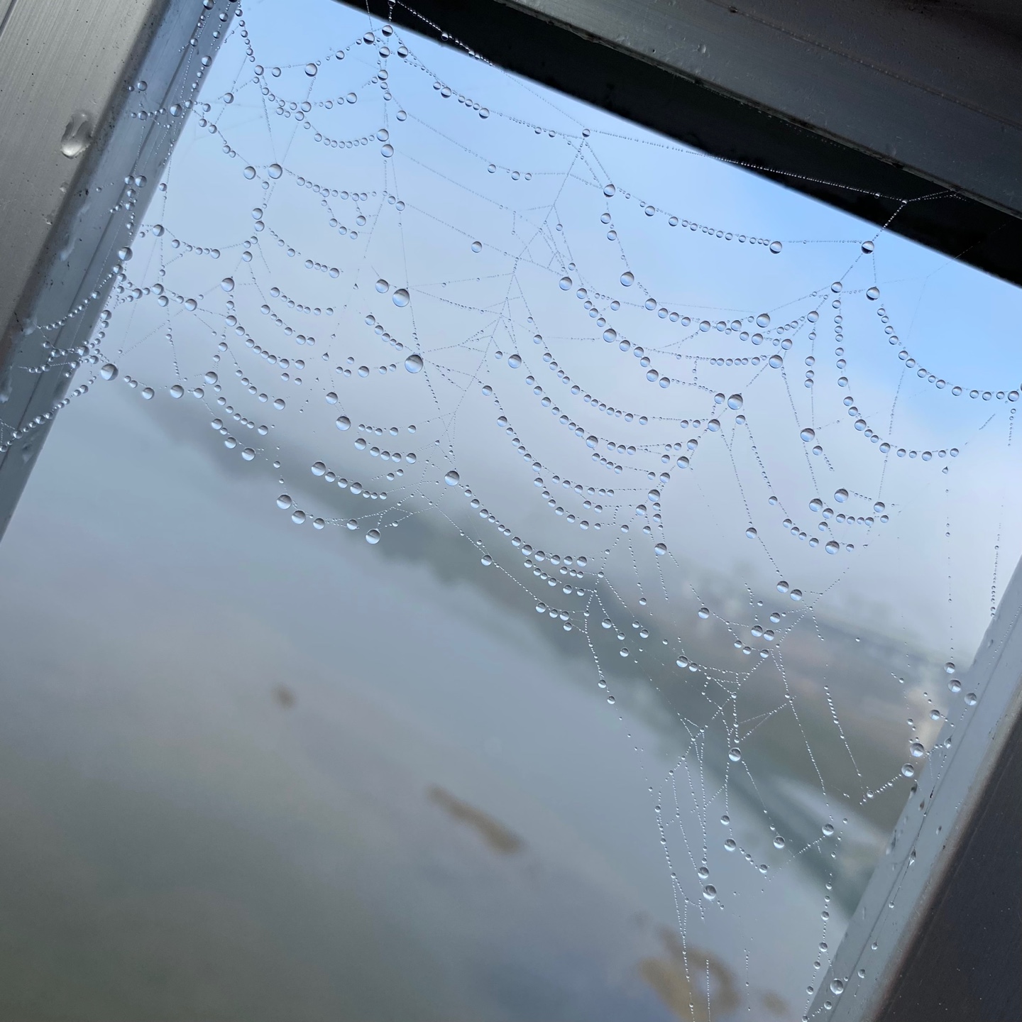 아침이슬에 촉촉하게 젖은 난간의 거미줄도 예뻐보이고, 파란 하늘에 솜사탕처럼 떠 있는 구름과 여유롭게 아침식사중인 오리와 새들도 함께 볼 수 있어서 잠시 앉아서 휴식하는 시간도 힐링 그 자체였어요.