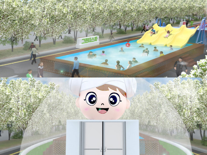 ✅ 내용: 온천로에서 대형 워터게이트 설치, 신나는 음악과 함께 미션에 따른 물총싸움