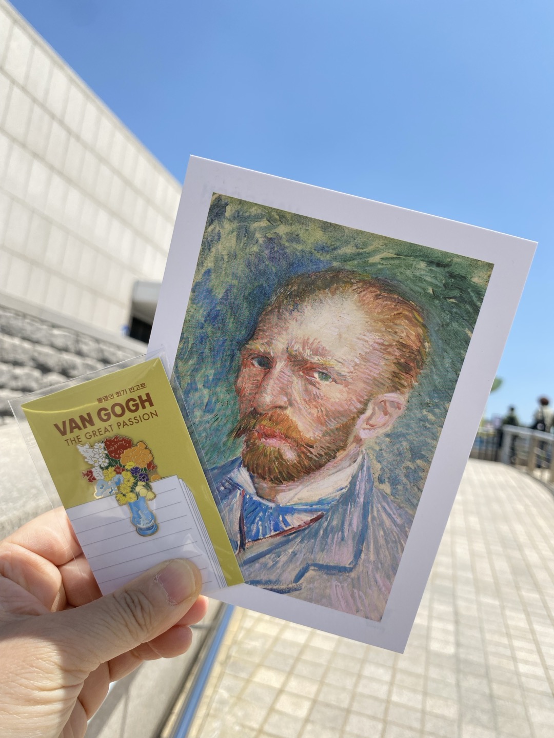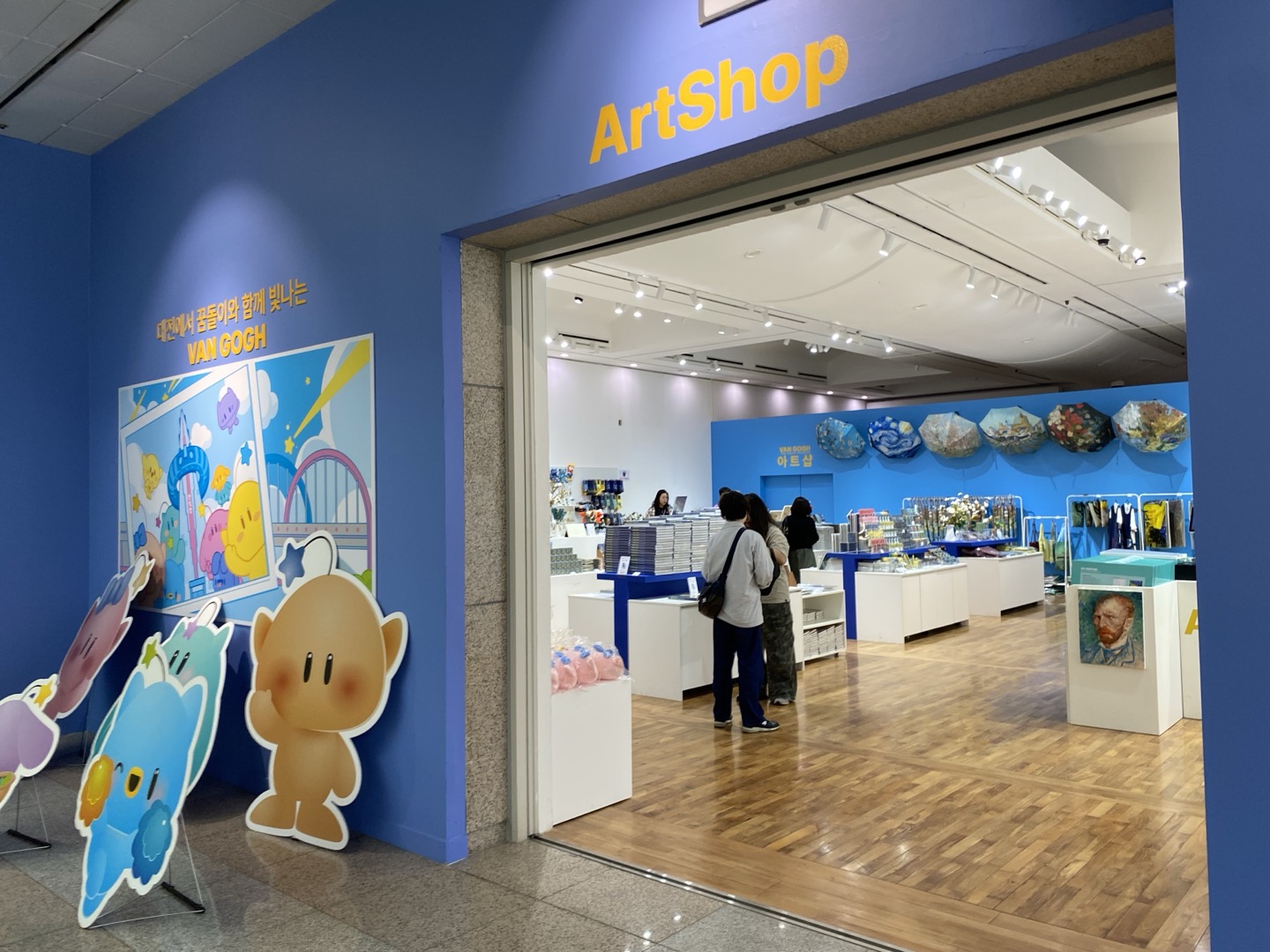 전시 후 아트샵에서 반 고흐 작품이 그려진 엽서, 파우치, 마그넷, 우산 등을 구경할 수 있었어요. 저는 '파란 꽃병에 담긴 꽃들' 모양의 책갈피와 '자화상 '엽서를 구매했는데, 일상 속에서도 전시의 감동을 떠올릴 수 있어서 만족스러웠습니다.