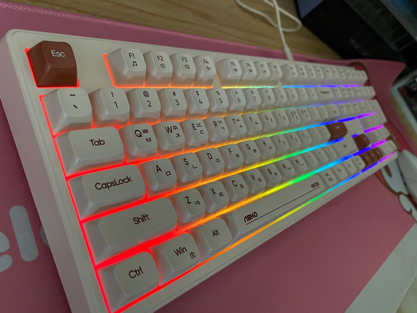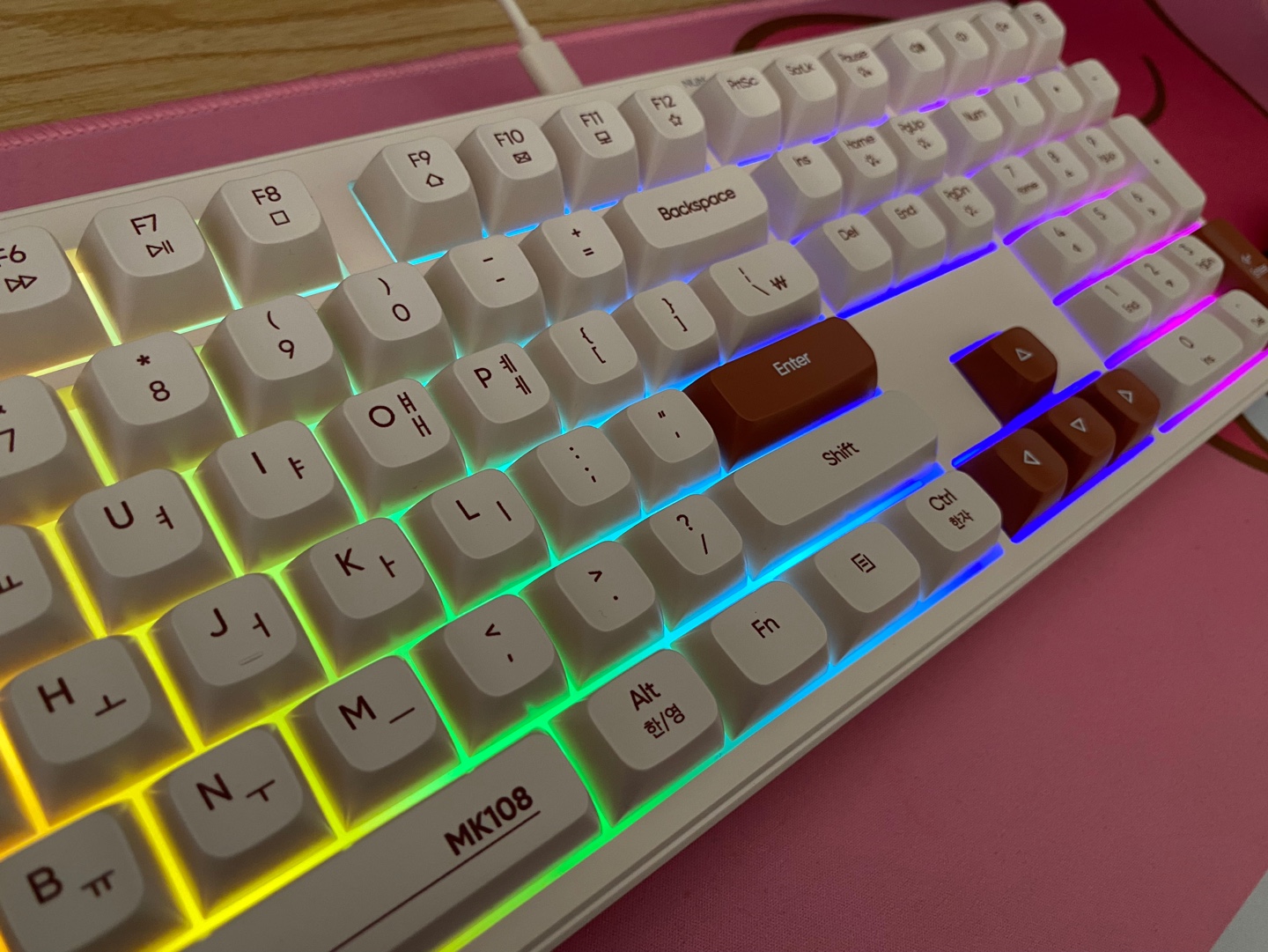 전에 쓰던 건 LED가 하얀색 키캡을 투과하다 보니 가끔 내가 어떤 자음, 모음을 치는 건지 잘 안 보일 때가 있었거든요.